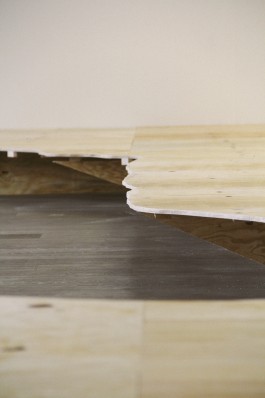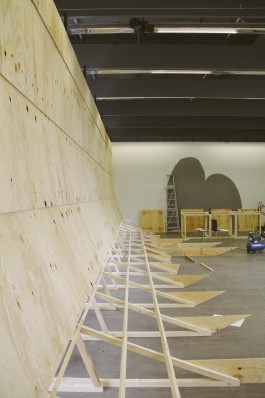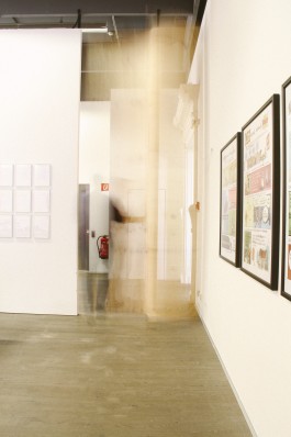Eine Ausstellung sowie Veranstaltungsreihe zum Thema Entschleunigung braucht einen Raum für sich. Das Konzept des erzwungenen Umwegs ist schnell gefunden, führt über das Warten am Flughafen oder bei der Behörde hin zu einer Schnecke. Zu sehen ist die Rückseite der Ausstellung, bis man letztlich mitten drin ist, nachdem auf dem Weg eine kleine Keramik-Werkstatt passiert wurde.