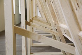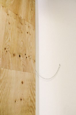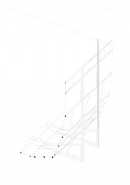 Die genauen Vorgaben und die Anzahl, Art und Verortung der Exponate ist lange unklar und wird erst nach Fertigstellung entschieden. Dementsprechend wirken sie teilweise ein wenig deplaziert. Die Kartoffel als Gegenpart zur überdimensionierten Schindel im Raster bietet Platz zum liegen, sitzen, stehen, laufen, zusehen. Verlassen wird das Ganze durch eine fast Raumhohe Tür, welche von einer Art Mies’schen Kreuzstütze gehalten wird.